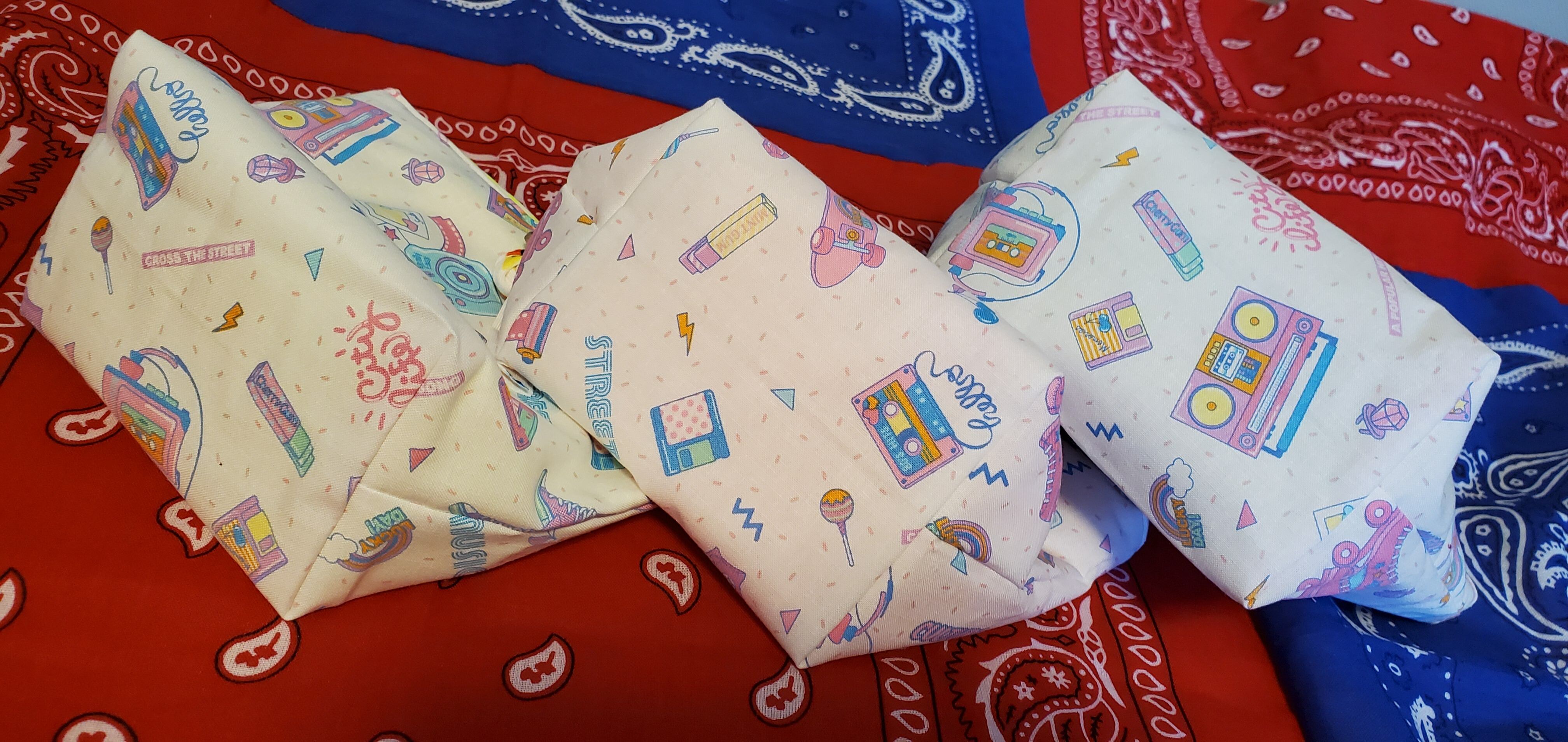 生地は本当にファンシーな懐かしグッズの柄、、