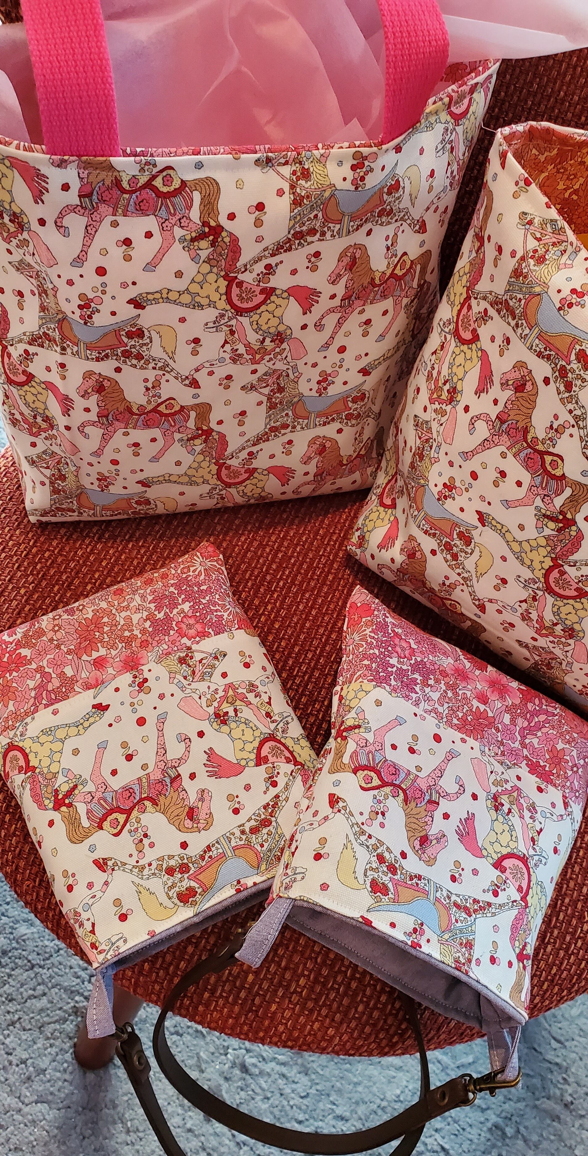 ミミつきなので、持ち手をかえたら斜めがけもできます