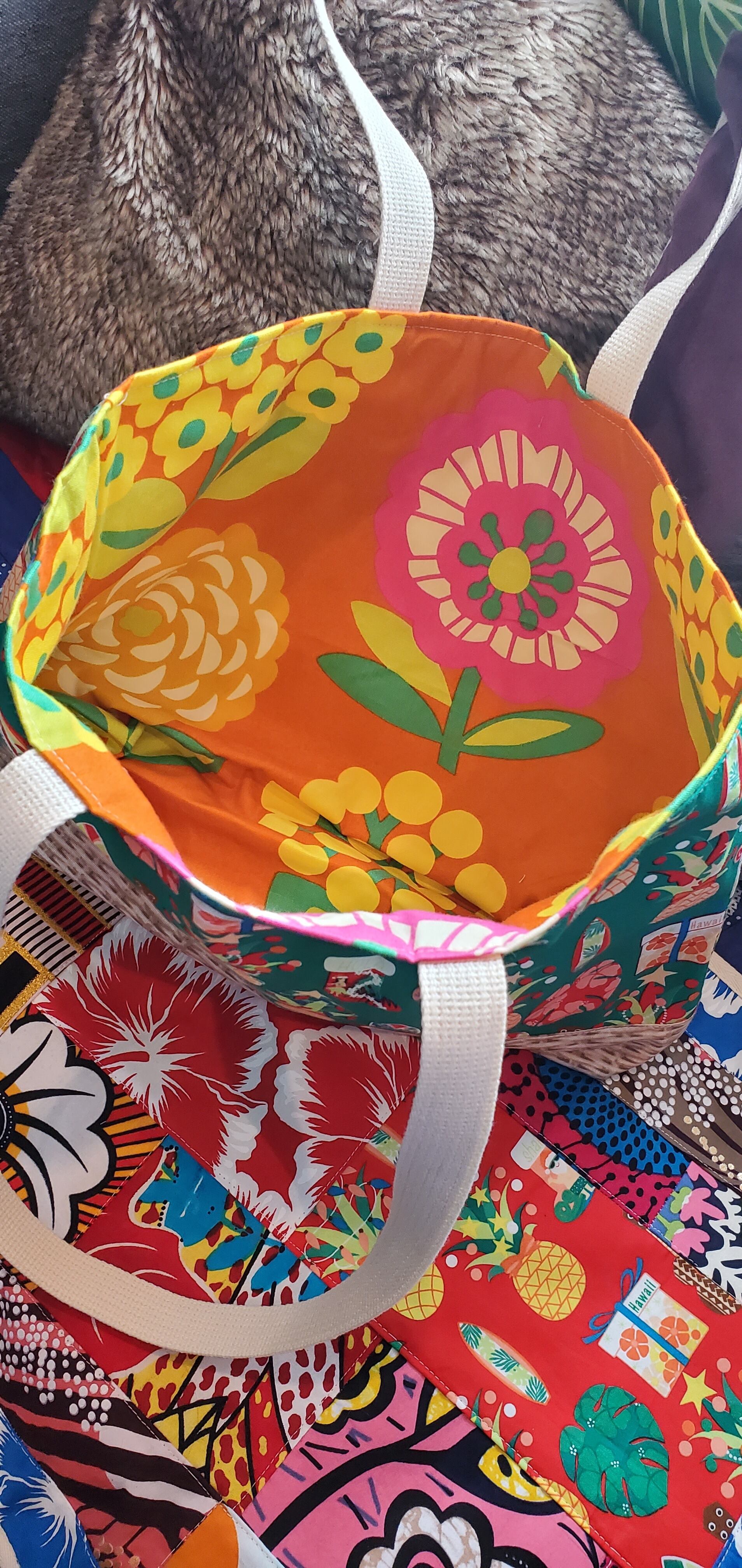 コットン素材を使用したアロハグリンbagは、ハワイのにぎやかでカラフルな雰囲気をそのままのbagにしました。